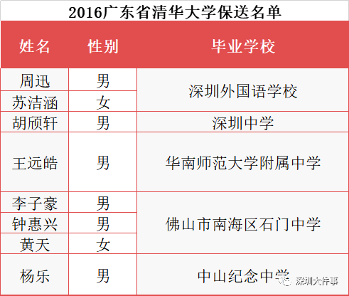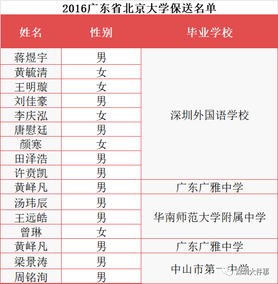 2016年廣東省清北保送共24人,深圳12人,深外獨占11人;