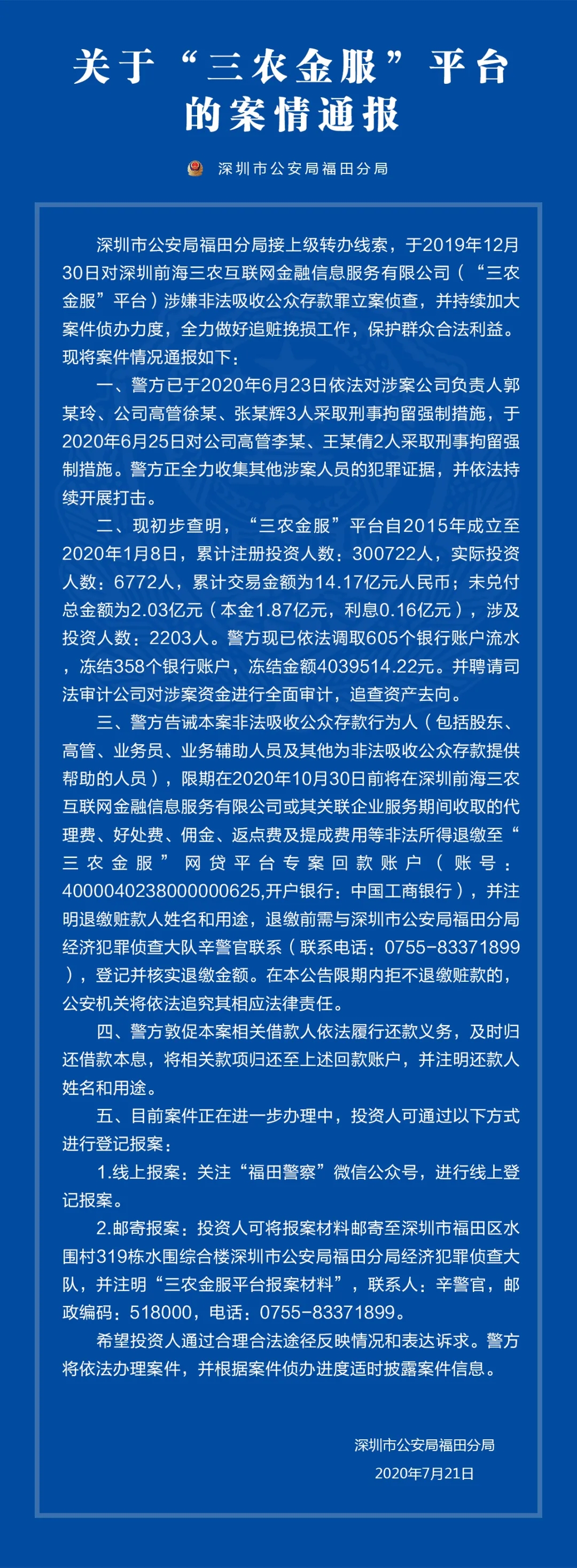 關(guān)于“三農(nóng)金服”平臺、“大麥理財(cái)”平臺的案情通報(bào)