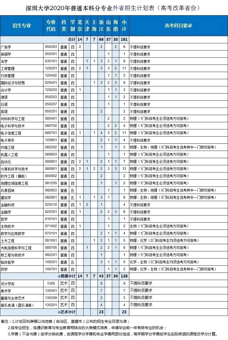 深圳大學(xué)2020年面向全國29個省(自治區(qū)、直轄市)招生,招生總規(guī)模保持不變,總計劃為6750人。增加天津這1個招生省份;增加廣東省外招生計劃;增加金融科技、機(jī)器人工程、學(xué)前教育(師范)3個招生專業(yè);增加軟件工程(騰班)、心理學(xué)(師范)2個專業(yè)方向。