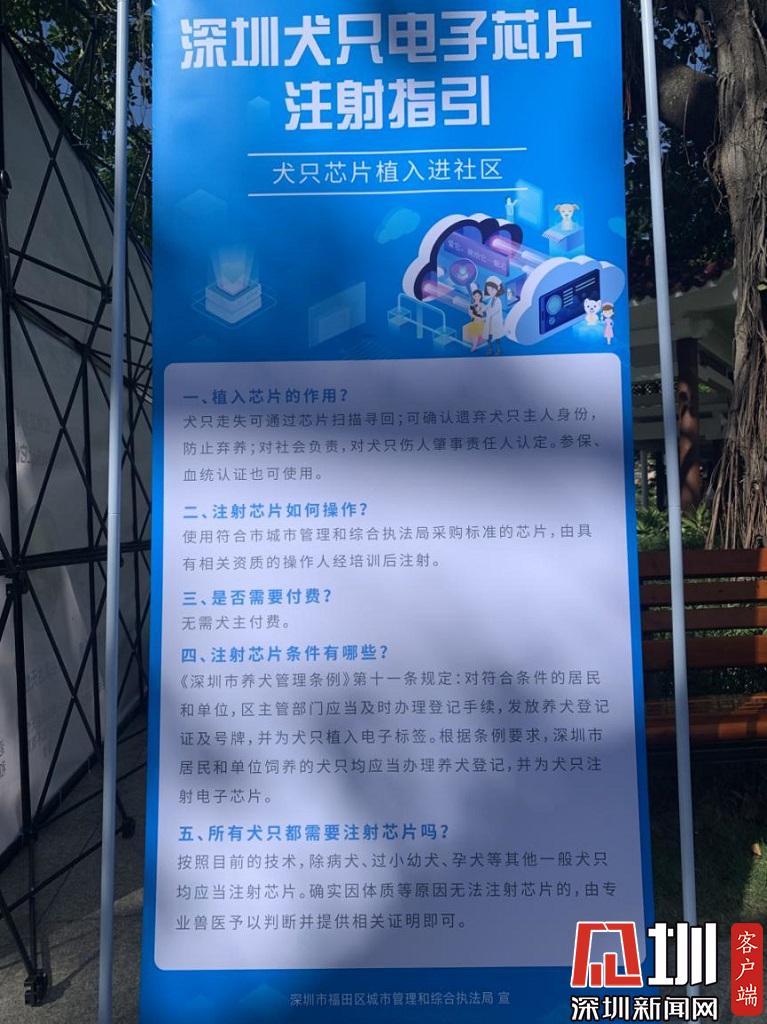 今年5月29日,在第二屆深圳愛犬活動現(xiàn)場,深圳宣布全面啟動為犬只植入電子芯片的工作,要求全市所有犬只必須注射芯片,芯片植入免費,到今年年底前實現(xiàn)系統(tǒng)登記犬只100%注射芯片。