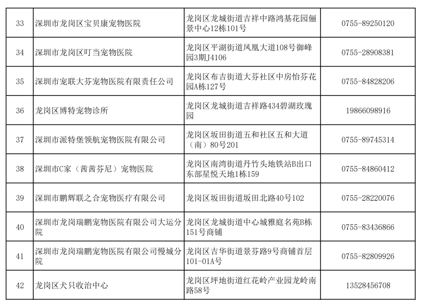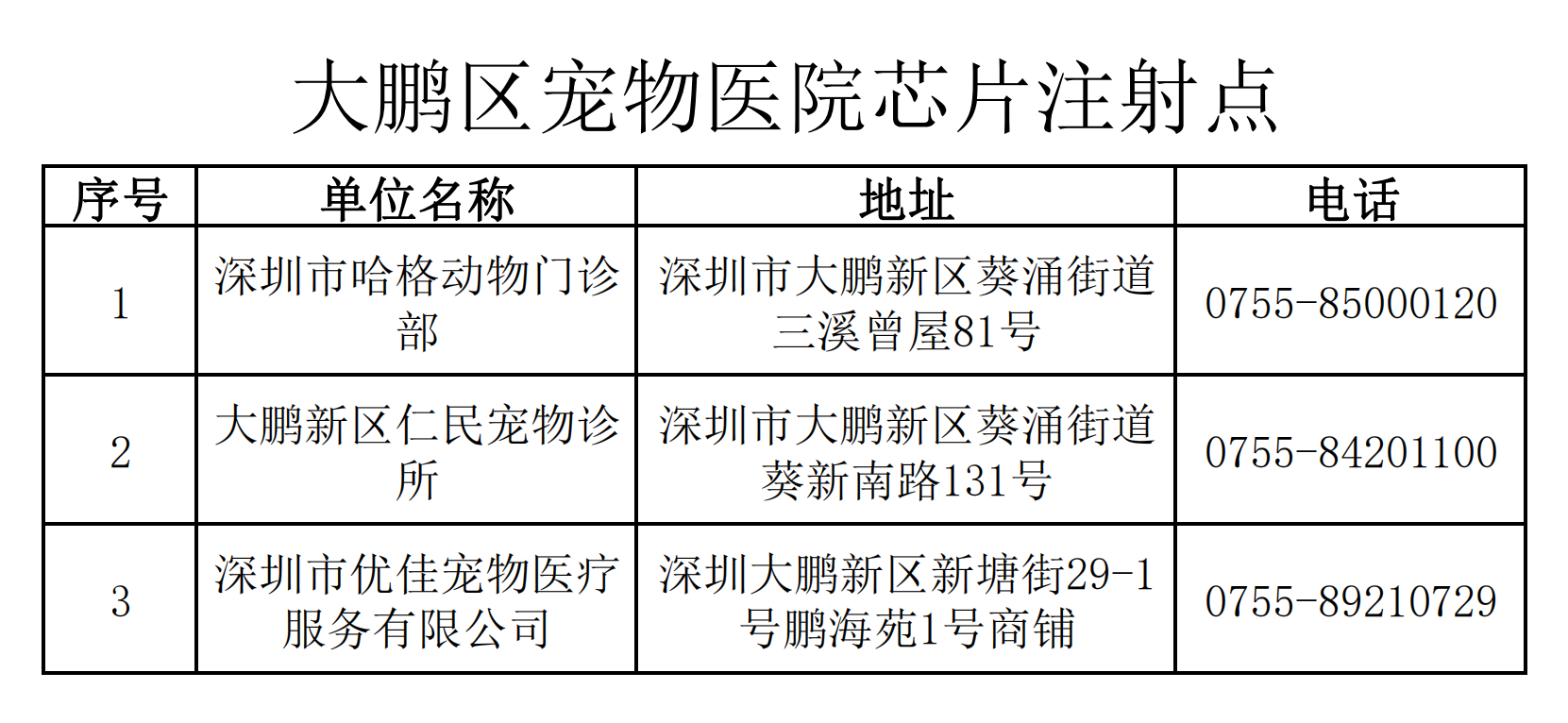 已與各區(qū)簽訂了《犬只芯片植入委托服務》的寵物醫(yī)院信息。