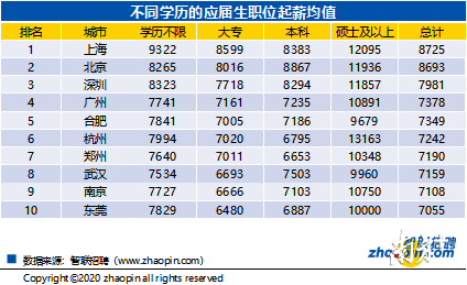 應(yīng)屆生平均起薪較高