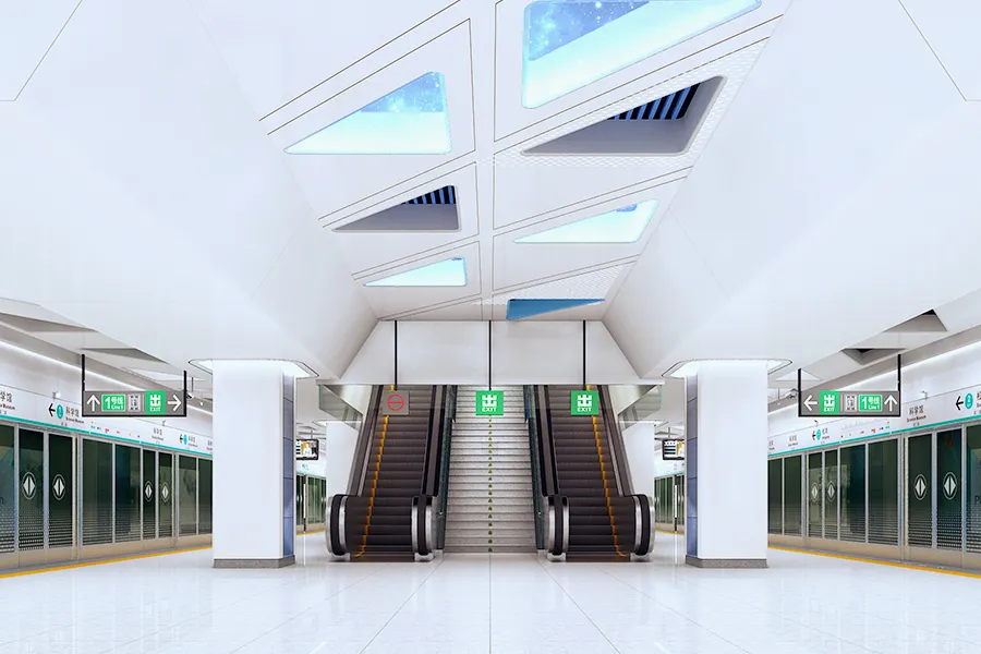 冬瓜嶺站地處福田區(qū)天威視訊附近,車站沿規(guī)劃福田彩田路南北向布置,車站為地下二層一島一側(cè)式站臺(tái)鋼筋混凝土箱形框架結(jié)構(gòu)。車站共設(shè)出入口7個(gè):A、B、C、D、3個(gè)物業(yè)出入口(E、F、G口)。