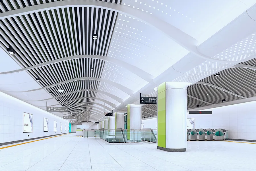 通新嶺站位于福田區(qū)上步路與紅荔路交叉口南側(cè)上步路上,呈南北向布置。車站為地下三層單柱雙跨結(jié)構(gòu),共設(shè)出入口3個:A、E、F。此外,與3號線通道換乘。