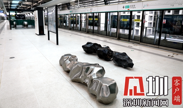 該站文化藝術(shù)品采用金屬鍛造而成,作品選用中國(guó)傳統(tǒng)經(jīng)典的“景石”造形,進(jìn)行解構(gòu)、重組的藝術(shù)處理。