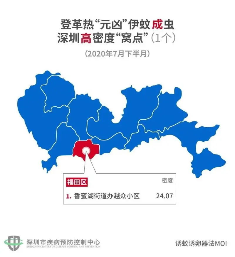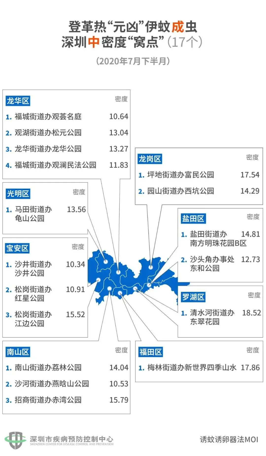 下面的伊蚊分布圖就是登革熱風(fēng)險(xiǎn)地圖。中密度說明有一定的登革熱傳播風(fēng)險(xiǎn),高密度則意味著,一旦有外部病例輸入,就可能在周邊片區(qū)引發(fā)登革熱流行。