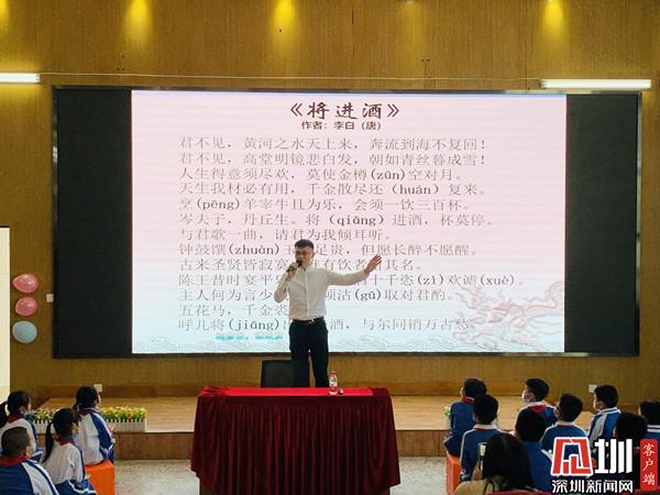深圳新聞網(wǎng)訊(深圳新聞網(wǎng)記者 彭桂紅 通訊員 梁文雅)為進(jìn)一步弘揚(yáng)中華優(yōu)秀傳統(tǒng)文化,近日,深圳市錦田小學(xué)特邀青年文化學(xué)者、深圳市百姓學(xué)習(xí)之星、深圳市公益閱讀推廣人、深圳市首屆家園文化文學(xué)會(huì)會(huì)長(zhǎng)晉玉東為廣大師生開展了一場(chǎng)別開生面的“中國(guó)古典詩(shī)詞朗誦藝術(shù)鑒賞——兼談如何朗誦好一首詩(shī)”公益文化講座。羅湖區(qū)錦田小學(xué)德弘校區(qū)副校長(zhǎng)劉向陽(yáng)、羅湖區(qū)錦田小學(xué)德弘校區(qū)主任張俊暉、羅湖區(qū)未來(lái)學(xué)校主任謝淑紅、德弘二年級(jí)家委代表以及語(yǔ)文科組老師,一同參加?;顒?dòng)由班主任梁文雅和學(xué)生劉沛東、張家琪共同主持,近200名學(xué)生參加了講座活動(dòng)。整場(chǎng)講座師生熱情高漲,主講嘉賓深入淺出、娓娓道來(lái),參與學(xué)生思維活躍、表現(xiàn)積極,帶動(dòng)校園形成了學(xué)習(xí)詩(shī)詞文化的良好氛圍。