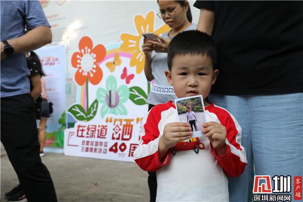 “我是在‘i羅湖’公眾號(hào)上看到消息,說(shuō)是周日梧桐綠道會(huì)舉辦攝影活動(dòng),于是帶著家人來(lái)游玩拍照”。羅湖市民周先生說(shuō)。這里有深圳和綠道元素的標(biāo)語(yǔ)、頭箍、合影異形牌等道具,拍照打卡很有紀(jì)念意義,而且還有專業(yè)的攝影師和智能照片打印機(jī)。“我們一家人很久沒(méi)有合影了”拿著剛打印出來(lái)的照片,周先生看著家人笑得很開(kāi)心。