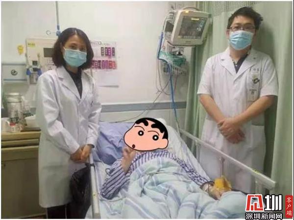 王威回憶:“做了7組心肺復(fù)蘇后,劉先生似乎曾有輕微的反應(yīng)。我后來也沒敢松懈,一直堅持做到醫(yī)護人員來到現(xiàn)場?!?/p> 病情危急 入院搶救后轉(zhuǎn)危為安 16:43分左右,羅湖醫(yī)院急診科醫(yī)護人員接到120指揮部出車通知后,以最快速度到達(dá)了現(xiàn)場,立即開始接手現(xiàn)場救治。當(dāng)時,王威已經(jīng)為劉先生做了7分鐘心肺復(fù)蘇。醫(yī)護人員迅速評估劉先生生命體征,發(fā)現(xiàn)他仍無呼吸、無心跳,立即繼續(xù)心肺復(fù)蘇并即時進行心電監(jiān)護,建立靜脈通路,開放氣道、球囊輔助通氣并注射腎上腺素。心電監(jiān)護提示室顫,在除顫2次后,劉先生恢復(fù)了自主呼吸和心跳,被送往羅湖醫(yī)院急診科進一步救治。