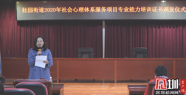 頒證儀式上,林宣妤對(duì)街道持證的心理服務(wù)人員表示祝賀,并提出殷切期望,希望持證人員所在社區(qū)要加強(qiáng)資源整合“盤活存量”,把購買服務(wù)與開拓專業(yè)志愿服務(wù)相結(jié)合,把挖掘暨有平臺(tái)、人才和培育本土化的心理服務(wù)隊(duì)伍相結(jié)合,把轄區(qū)內(nèi)現(xiàn)有的心理咨詢室、心理咨詢師、心理服務(wù)熱線、心理服務(wù)陣地等資源加以整合,構(gòu)建跨部門、跨領(lǐng)域的心理協(xié)作體系。同時(shí)希望持證人員在工作中能夠完成去粗取精,揚(yáng)長抑短,去劣存優(yōu)的動(dòng)態(tài)過程,將社會(huì)心理服務(wù)體系建設(shè)工作抓早抓好,落實(shí)到位。張小梨認(rèn)為桂園街道黨工委辦事處拿出人力物力財(cái)力對(duì)參與社會(huì)心理服務(wù)的基層干部進(jìn)行心理學(xué)專業(yè)知識(shí)系統(tǒng)培訓(xùn),可以說是走在了前列,探索出社會(huì)心理助力社會(huì)治理現(xiàn)代化建設(shè)的“桂園模式”,為深圳社會(huì)主義先行示范區(qū)建設(shè)在社會(huì)治理與社會(huì)心理服務(wù)方面提供了鮮活案例,值得點(diǎn)贊和推廣,也為相關(guān)學(xué)者在研究上提供了范例。