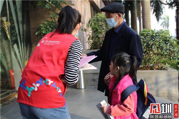 據(jù)社工介紹,每個(gè)月社區(qū)都會(huì)舉行義工外展宣傳,本次外展除了設(shè)置常規(guī)的義工宣傳、招募;還根據(jù)政府的號(hào)召,面向全體社區(qū)居民,特別融入了倡導(dǎo)“留深過年齊抗疫”環(huán)節(jié)。通過義工向居民發(fā)放留深過年倡議書、留深過年有獎(jiǎng)問答等方式,呼吁更多人留在深圳過年,以不同的方式為社區(qū)抗疫作出貢獻(xiàn)。