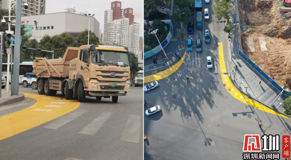 二是聚焦難點強(qiáng)化綜合治理,創(chuàng)新使用右轉(zhuǎn)盲區(qū)警示帶。針對大型工地周邊道路泥頭車的安全隱患問題,在文錦-湖貝路口試點使用右轉(zhuǎn)彎盲區(qū)警示帶,增設(shè)安全凸面鏡與反光警示標(biāo)志進(jìn)行盲區(qū)補(bǔ)全,提醒行人非機(jī)動車在運輸車輛通行時自覺避讓,避免因車輛盲區(qū)引發(fā)的交通事故,確保群眾出行安全。