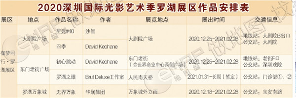 2020深圳光影藝術(shù)季羅湖展區(qū)作品安排表。