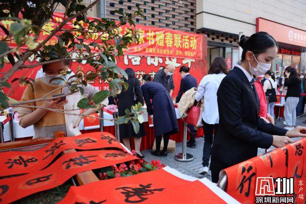 據(jù)悉,羅湖區(qū)書法家協(xié)會于2021年春節(jié)前夕組織一批優(yōu)秀書法家深入社區(qū)基層,現(xiàn)場為群眾書贈春聯(lián),書贈福字,目前活動先后在羅湖美術(shù)館南廣場、漁民村、羅湖區(qū)委等地舉辦多場。羅湖區(qū)書法家書贈春聯(lián)活動已連續(xù)舉辦了22年,深受群眾喜愛,成為羅湖的一項品牌活動。