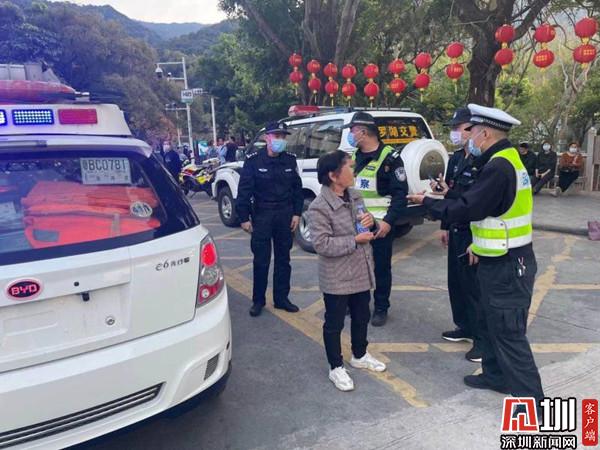 得知該情況后,現場隊員一方面穩(wěn)定老人家情緒,另一方面向其了解家人的基本情況。據老人描述,當天她與女兒和女婿兩人來到梧桐山游玩,結果不小心走散。而老人身上并沒有攜帶相關證件和通訊工具,也無法提供家人具體聯系方式和證件號碼。由于當時游人眾多,為確保老人安全,盡快幫助其找回走散的家人,現場隊員立即與交警隊指揮中心反映情況,并聯系東湖派出所協(xié)同開展調查。在執(zhí)勤交警與派出所警力的緊急幫助下,老人懸著的心也總算放下,并對隊員的熱心幫助表示衷心感謝。