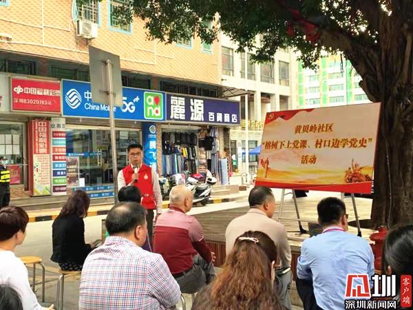 見圳客戶端·深圳新聞網(wǎng)3月12日訊(記者 郭含笑 通訊員 潘霈穎)為深入學(xué)習(xí)貫徹習(xí)近平總書記在黨史學(xué)習(xí)教育動員大會上的重要講話精神,全面貫徹落實黨中央、省委、市委、區(qū)委關(guān)于黨史學(xué)習(xí)教育的決策部署,深圳市羅湖區(qū)黃貝街道黃貝嶺社區(qū)于3月12日下午開展“榕樹下講黨課、村口邊學(xué)黨史”主題黨日活動。黃貝街道黨工委副書記、辦事處主任鐘遠鋒以及轄區(qū)黨員、居民共30余人參與此次活動。