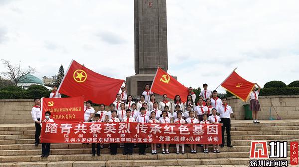 見圳客戶端·深圳新聞網(wǎng)3月31日訊(記者 郭含笑 通訊員 黃璨)春風(fēng)送花表哀思,青松滴翠寄深情。3月31日下午,深圳市羅湖區(qū)東曉小學(xué)少先隊(duì)大隊(duì)前往深圳市革命烈士陵園開展“踏青共祭英烈,傳承紅色基因”祭掃革命烈士碑活動(dòng)。東曉小學(xué)黨總支部黨員代表、東曉小學(xué)少工委代表、羅湖區(qū)東湖街道翠鵬社區(qū)黨員代表、東曉小學(xué)團(tuán)支部團(tuán)員代表、少先隊(duì)員代表,共計(jì)40人參加此次活動(dòng)。