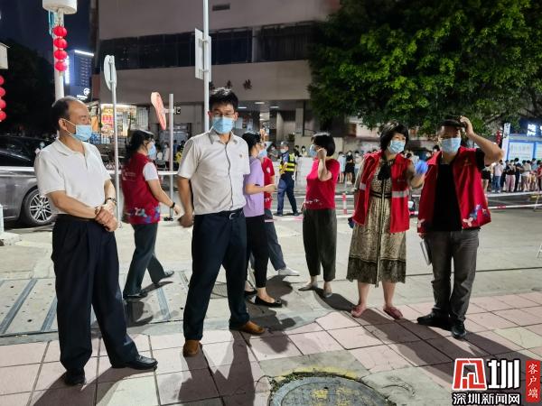見圳客戶端·深圳新聞網2021年5月27日訊(記者 劉晨 通訊員 魏官明 陳惠冰)5月21日以來,深圳鹽田區(qū)、龍崗區(qū)相繼排查發(fā)現(xiàn)新冠肺炎無癥狀感染者,為堅決遏制疫情擴散蔓延,全力守護人民群眾的生命健康安全。羅湖區(qū)東湖街道按照市委市政府、區(qū)委區(qū)政府的統(tǒng)一部署,結合疫情防控形勢新變化,快速反應、周密部署,5月26日下午,火速整合各部門、各社區(qū)近400名工作人員組成6支防疫突擊隊伍,街道黨工委書記程時菊,黨工委副書記劉慧堅、謝統(tǒng)敏、沈文俊,黨工委委員方海峰,二級調研員張翠紅分別擔任6支隊伍的督導長,連夜帶領突擊隊員們奔赴各相關社區(qū)開展核酸檢測工作。