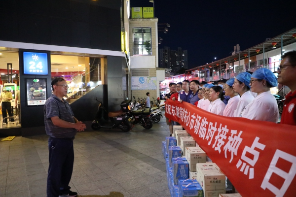 “大家辛苦了,感謝大家的辛勤付出!”在布心市場接種點(diǎn),程時(shí)菊首先向全體工作人員致以誠摯的感謝,并叮囑他們要注意勞逸結(jié)合,做好自身防護(hù)。他強(qiáng)調(diào)全體工作人員面對艱苦的工作環(huán)境,沒有絲毫退縮,努力克服種種困難,始終以飽滿的熱情、昂揚(yáng)的斗志,堅(jiān)守崗位、加班加點(diǎn)、辛勤工作,每天圓滿完成了新冠疫苗接種清零任務(wù)。目前深圳疫情防控形勢嚴(yán)峻,希望大家繼續(xù)發(fā)揚(yáng)攻堅(jiān)克難、甘于奉獻(xiàn)的精神,全力加快新冠疫苗接種速度,為人民群眾的生命健康筑起堅(jiān)實(shí)屏障。
