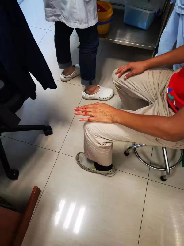 心中著急的梁國(guó)輝剛上路不久,突然間精神恍惚,車(chē)頭沒(méi)把穩(wěn),等反應(yīng)過(guò)來(lái)已經(jīng)趴在地上了。網(wǎng)格員王勇剛好路過(guò),扶起梁國(guó)輝送到社康止血與包扎。社康醫(yī)生一邊處理一邊對(duì)他說(shuō):“傷口比較深,現(xiàn)在幫你止血,等一下必須去留醫(yī)部急診處理一下,牙齒也缺了兩塊,怎么傷得那么重呀?”“昨天加班熬夜了,沒(méi)睡好,給你添麻煩了。”梁國(guó)輝不好意思地說(shuō)道,社康醫(yī)生笑著安撫他:“大家都是兄弟姐妹,我們昨天不是一起在繽紛時(shí)代加班驗(yàn)核酸…”原來(lái)社康醫(yī)生正是此前與自己一起在疫情防控工作的小伙伴之一,便安下心來(lái)接受治療。