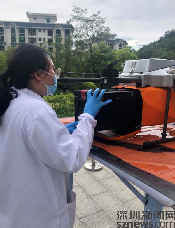 無人機(jī)從羅湖中醫(yī)院起飛。