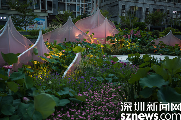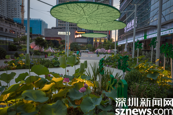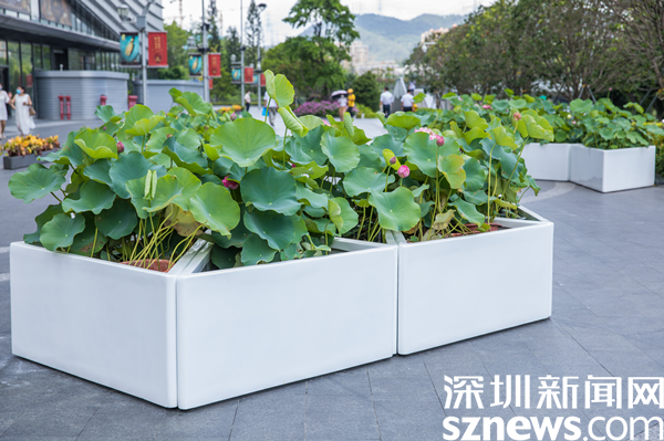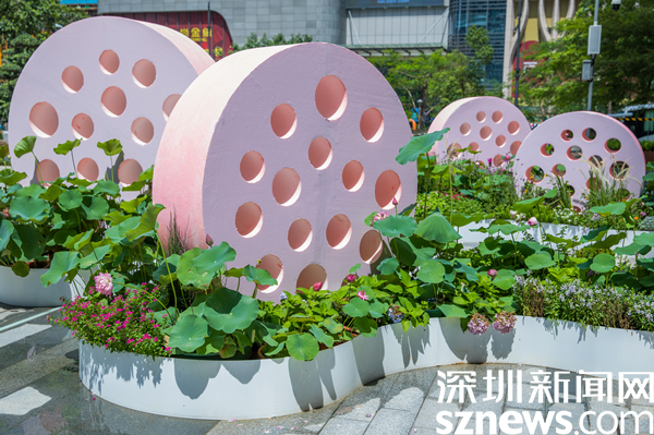 據(jù)介紹,街區(qū)以“花樣水貝、紅荷傳情”為主題,提取荷花、蓮葉等造型元素,應(yīng)用多品種荷花打造藝術(shù)花境,充分展現(xiàn)荷花的藝術(shù)之美、文化之美。圍繞水貝壹號(hào)、水貝金座、水貝銀座、水貝國(guó)際等商圈建筑設(shè)置有紅荷傳情、荷葉青青、荷你藕遇、鉆石蓮心、荷荷美美、映日荷花等景點(diǎn)。