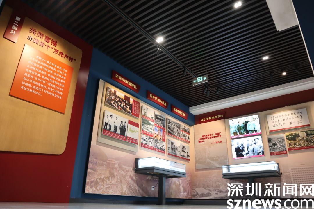 跟著直播鏡頭走過長達(dá)350米,共擁有28幅墻面浮雕的文化長廊,便是漁民村村史館的入口,步入村史館內(nèi),便是序廳,腳下是一副羅湖區(qū)地圖,大屏幕上,播放著8分鐘的《乘風(fēng)破浪再啟航》漁民村紀(jì)實(shí)片,全面展示了在中國共產(chǎn)黨領(lǐng)導(dǎo)下漁民村的發(fā)展歷程。