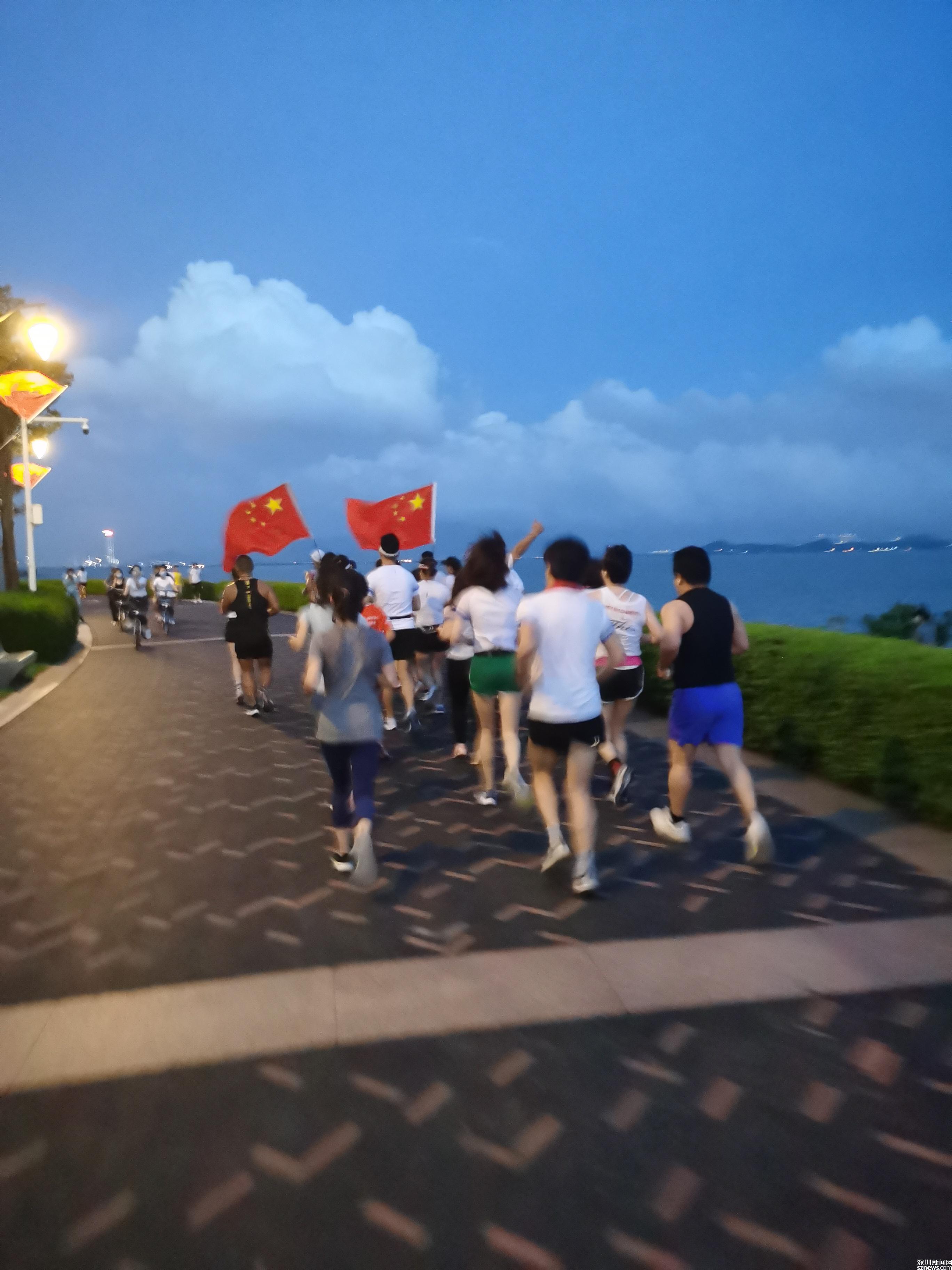 當(dāng)天晚上,楊雨晨又來到深圳灣公園,與精彩人生跑團(tuán)的跑友一起,打著五星紅旗,列隊奔跑。大家都是穿著團(tuán)服自發(fā)而來,由衷地為自己的百年大黨驕傲。也有不少人跟楊雨晨一樣,早上跑完了,意猶未盡,晚上再跑。楊雨晨說:“看了中國共產(chǎn)黨成立100周年大會,心里特別振奮,特別給力,所以,早上跑完,晚上再跟大家一起慶祝。”