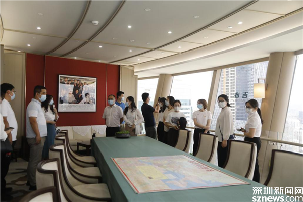 “不到國貿(mào),不算來過深圳?!眹Q(mào)是深圳的一個(gè)時(shí)代記憶,國貿(mào)大廈見證了深圳改革開放的輝煌詩篇。全體黨員干部跟隨著講解員的生動(dòng)講解,透過檔案、文物、老照片等展品,以視頻、音頻等方式“沉浸式”學(xué)習(xí),傾聽歲月回響,重溫奮斗征程,切身體會(huì)國貿(mào)大廈建設(shè)過程中創(chuàng)造“三天一層樓”的“深圳速度”。隨后,黨員干部來到旋轉(zhuǎn)餐廳鄧公廳,重溫鄧小平同志關(guān)于改革開放的重要思想。