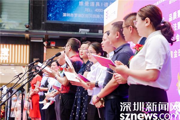 隨后,水貝萬山珠寶文化產(chǎn)業(yè)園總經(jīng)理陳曄平、金展珠寶廣場招商運營總監(jiān)王琳琳、特力珠寶大廈運營總經(jīng)理崔戰(zhàn)紅、水貝金座運營中心總監(jiān)趙麗、水貝國際中心運營總監(jiān)廖燦榮等交易中心代表,以及周六福珠寶總經(jīng)理謝明育、周大生珠寶行政副總經(jīng)理周洪生、金大福珠寶副總裁丘航等珠寶品牌代表一同上臺宣誓,表達展示特色、推廣品牌、促進消費、助推增長的決心。