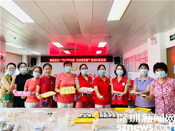 現(xiàn)場有的居民和面、搓餅皮,有的則在一旁稱餡料、壓模具。大家發(fā)揮團結互助精神,分享自己的方法和經(jīng)驗,現(xiàn)場一片歡聲笑語,制作完成的小小的月餅,承載了濃濃的情誼和愛心。