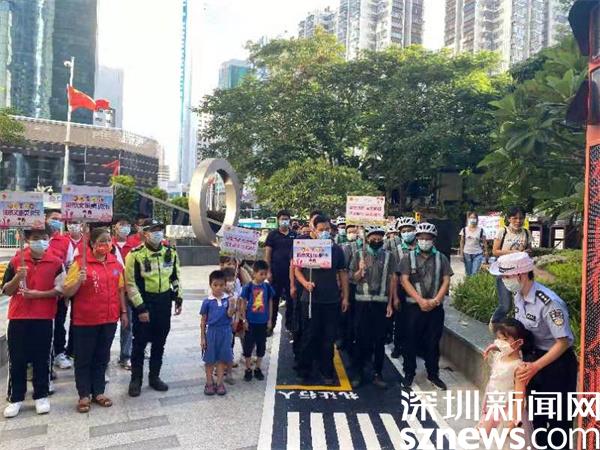 據(jù)了解,這是羅湖交警大隊(duì)聯(lián)合東門(mén)街道辦事處、羅湖團(tuán)區(qū)委、區(qū)文體志愿者協(xié)會(huì)、區(qū)曲藝家協(xié)會(huì)、深圳市曉安科技有限公司、深圳市廣運(yùn)和汽車(chē)租賃有限公司、樸樸超市企業(yè)依托東門(mén)交通安全主題公園組織開(kāi)展的“一盔一帶/拒絕酒駕”主題交通安全宣傳活動(dòng),旨在為群眾辦實(shí)事辦好事,確保群眾國(guó)慶期間出行安全,提升各類(lèi)群體交通安全意識(shí)。