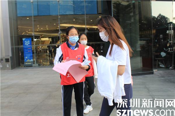 “叔叔,這是桂園街道給市民的一封信,請閱讀?!薄鞍⒁?,這是《深圳市民文明手冊》,請翻閱?!必?fù)責(zé)發(fā)放宣傳資料的小朋友大聲告訴過往的行人,深圳正在創(chuàng)建全國文明城市,請從“我”做起,為深圳加油,做文明市民。