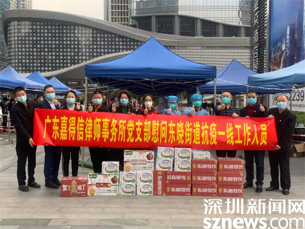 1月10日下午,深圳市人大代表、廣東嘉得信律師事務所主任閔齊雙來到獨樹社區(qū)IBC核酸檢測點慰問抗疫一線工作人員,送上牛奶、功能特飲及水果等慰問品,向奮戰(zhàn)在一線人員致敬和感謝,表示將全力做好一線人員關愛和后勤保障工作,齊心協力打贏這場硬仗。