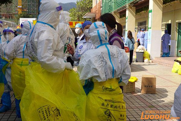 1月11日,深圳市報告4例新冠病毒陽性感染者,其中3例居住在羅湖區(qū)清水河街道草埔西社區(qū)鶴圍村64棟,鶴圍村被劃為封控區(qū)。居住在此的居民“只進不出”,但醫(yī)護人員仍需進入,開展上門核酸采樣工作。一邊要嚴控封控區(qū)進出人員,一邊要確保核酸采樣工作有序開展,于是,羅湖的“白衣天使”們紛紛成為身兼多職的“工具人”。