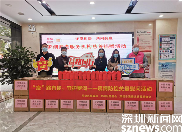 2022年1月17日下午,羅湖區(qū)慈善會聯合區(qū)民政局舉辦“守望相助共同抗疫——羅湖羅湖養(yǎng)老服務機構慈善捐贈活動”,為羅湖區(qū)5家養(yǎng)老服務機構工作人員提供共300份“愛心防疫包”,支持養(yǎng)老服務機構做好疫情防護工作,切實保護在院老人的生命安全和身體健康。