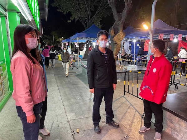 隨后,文促會(huì)一行來到了東湖街道大望社區(qū)。在社區(qū)核酸檢測(cè)現(xiàn)場(chǎng),大望社區(qū)黨委書記高桂秀正在指揮現(xiàn)場(chǎng)工作;大望實(shí)業(yè)公司董事長何雨聰和大望社區(qū)副書記李雪康兩人都面帶倦容,明顯近期睡眠嚴(yán)重不足。據(jù)了解,高桂秀近期一直綁著護(hù)腰墊片,帶病堅(jiān)持抗疫。