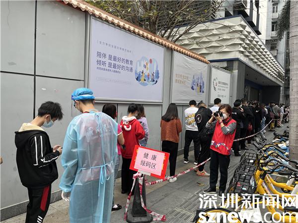 為了方便轄區(qū)居民、轄區(qū)企業(yè)員工核酸檢測(cè),老圍社區(qū)在轄區(qū)內(nèi)設(shè)置了多個(gè)臨時(shí)核酸檢測(cè)點(diǎn)。楊紀(jì)歐每天不停地在老圍花園檢測(cè)點(diǎn)、名仕閣檢測(cè)點(diǎn)、禧程酒店檢測(cè)點(diǎn)、大劇院檢測(cè)點(diǎn)輪流運(yùn)送后補(bǔ)的物資,帶領(lǐng)著不同時(shí)間段的義工去到不同的核酸點(diǎn),安排好義工的工作內(nèi)容和交接。對(duì)一些新手義工,她都會(huì)手把手地教,如何查驗(yàn)綠碼和粵酸碼、如何維持秩序等。