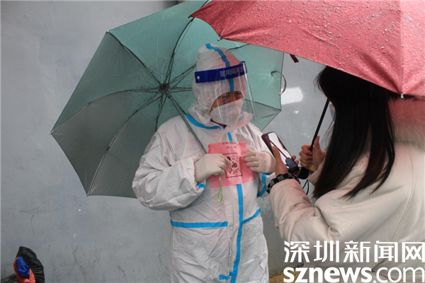 讀特客戶端·深圳新聞網(wǎng)2022年2月24日訊(記者 劉嘉敏 通訊員 楊紀(jì)歐)雖然這幾天的冷風(fēng)冷雨一直不停,氣氛低至6度,但深圳市羅湖區(qū)桂園街道老圍社區(qū)設(shè)在各處的核酸檢測(cè)點(diǎn)一直在有序進(jìn)行著。人們打著雨傘排隊(duì),社區(qū)工作人員和志愿者高效地引導(dǎo),讓等候的人快速地采樣,協(xié)助不會(huì)操作的人出示粵核酸碼。工作人員的手腳都凍僵了,但沒有人退縮,用自己的“凍”起來,守護(hù)著深圳人的綠碼,捍衛(wèi)著社區(qū)的平安。