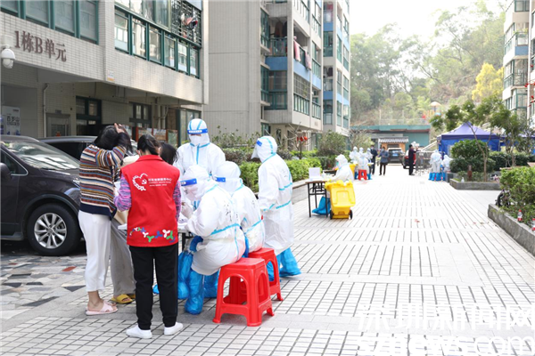 2月28日早上,蓮塘街道各社區(qū)集結(jié)工作人員支援長嶺社區(qū),每個(gè)樓棟由長嶺社區(qū)黨委委員“一對一”掛點(diǎn),幫助居民采購配送物資,協(xié)助核酸檢測排查、流調(diào)排查、生活垃圾清理等,全力保障小區(qū)住戶日常生活需求。據(jù)蓮塘街道工作人員介紹,為保證核酸采樣快速、高效,長嶺社區(qū)每棟樓樓下都安排了一個(gè)核酸采樣點(diǎn),助力核酸檢測采樣工作有序開展。