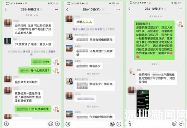 “疫情發(fā)生以來,長嶺社區(qū)全體工作人員通宵達(dá)旦全力抗疫,力爭跑在疫情前,第一時(shí)間按樓棟、分單元建立8個(gè)居家隔離服務(wù)微信群,社區(qū)工作人員和志愿者進(jìn)入每個(gè)單元群收集居民的各種服務(wù)需要,并及時(shí)回復(fù)。之前,有工作人員在給外賣消毒中發(fā)現(xiàn)有感冒消炎藥物,立即打電話咨詢,得知有位居民出現(xiàn)扁桃體發(fā)炎引發(fā)高燒,隨及在居家隔離服務(wù)微信群請求支援,開通24小時(shí)專線服務(wù),讓居民能夠及時(shí)就醫(yī)”。