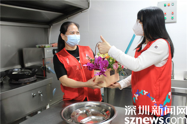 在社區(qū)廚房,老圍社區(qū)居民周文清正在忙碌,疫情開始以來(lái),社區(qū)擔(dān)負(fù)著下沉人員和醫(yī)務(wù)人員的中餐和晚餐,每餐四五十人吃飯,任務(wù)繁重,廚師一人根本忙不過(guò)來(lái)。家住老圍花園的社區(qū)居民賴秀文、周文清得知情況后,立刻趕來(lái)幫廚,洗菜、切肉、炒菜、分裝飯盒、搞衛(wèi)生,樣樣都搶著干。羅湖區(qū)最美家庭賴秀文,一連兩個(gè)星期在社區(qū)幫廚,發(fā)揮她高超的廚藝,將每一道菜都做得色香味俱全。有了這些熱心居民的協(xié)助,一線人員得以及時(shí)吃上熱乎乎的飯菜,保障了防疫工作有序進(jìn)行。她們用自己的方式參與疫情防控,為社區(qū)安寧貢獻(xiàn)一己之力。