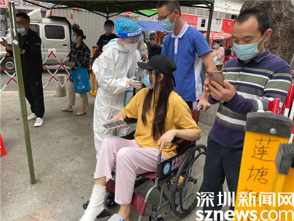 在大規(guī)模核酸采樣中,老幼病殘?jiān)械忍厥饫щy群眾在長時(shí)間排隊(duì)過程中,身體負(fù)擔(dān)較大。但在蓮塘社區(qū),所有的核酸點(diǎn)最左側(cè)通道都是“綠色通道”,志愿者在維持秩序疏導(dǎo)人流過程中,遇到需要幫助的困難群眾都會引導(dǎo)至綠色通道,提供方便、快捷的人性化服務(wù)。社區(qū)的貼心暖心舉措贏得了越來越多群眾的理解和支持,如今,即使在核酸采樣通道人員飽和的情況下,排隊(duì)群眾也都會自覺讓出位置給特殊群眾優(yōu)先。