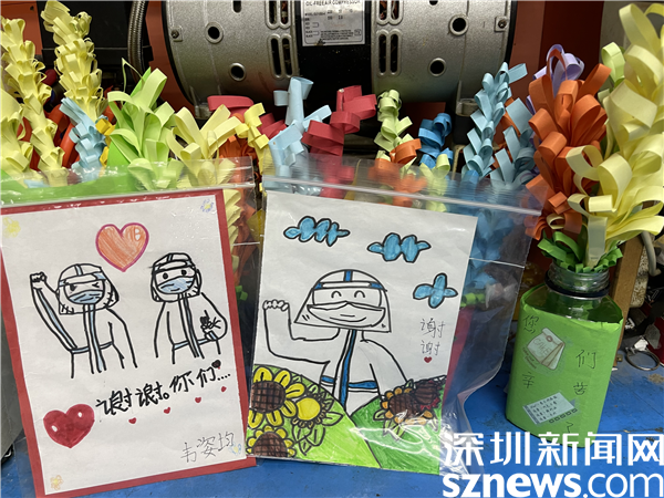 羅湖區(qū)蓮塘小學(xué)某班班長見醫(yī)護(hù)人員和義工志愿者日夜操勞,不辭辛苦,號召全班同學(xué)為防疫人員“送溫暖”。有的同學(xué)親手制作五顏六色的精美手折紙花,還有些同學(xué)別出心裁的繪制了“感謝大白”賀卡,禮物制作完成后,全班同學(xué)分頭行動,將手折紙花送到各核酸采樣點(diǎn)醫(yī)護(hù)人員和志愿者手中?!拔覀儙筒簧鲜裁矗鲂┝λ芗暗氖虑?,為大哥哥大姐姐送去感動和力量,也是為抗疫做貢獻(xiàn)?!眮碜粤_湖中醫(yī)院,在蓮塘村七巷小廣場支援的醫(yī)護(hù)人員們收到同學(xué)們送來的“禮物”非常開心,紛紛表示,雖然每天工作很辛苦,但能得到群眾尤其是孩子們的肯定十分幸福,禮物雖小,卻無比溫暖和感動。
