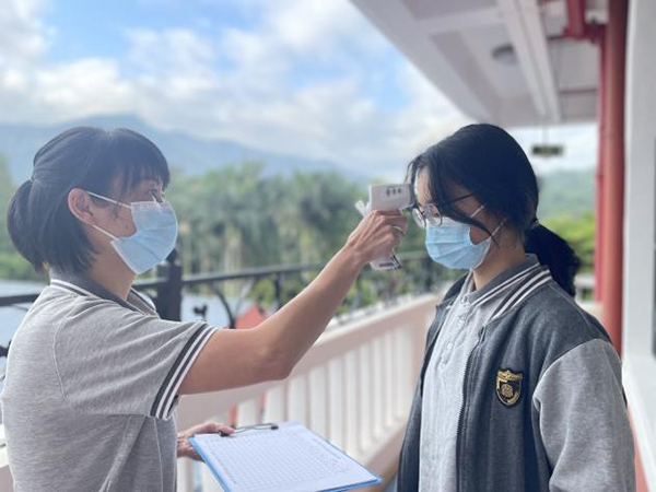返校情意切,防疫當(dāng)居先。校門口,入校流程清晰明確,所有返校學(xué)生間隔一米有序排隊(duì),經(jīng)過物品消毒、手部消毒、口罩更換,進(jìn)入緩沖區(qū),測溫查碼、核驗(yàn)資料進(jìn)入校園。申清翠校長帶領(lǐng)學(xué)校全體行政團(tuán)隊(duì)全程把關(guān),堅(jiān)守崗位,確保學(xué)生們健康、安全進(jìn)入校園。