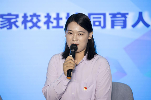 社區(qū)代表大望社區(qū)黨委書記高桂秀向大家分享了她致力于“家校社協(xié)同育人”的初心以及大望社區(qū)的相關(guān)探索,大望社區(qū)孩子及其家庭人數(shù)占社區(qū)的70%以上,且大部分無異于“留守未成年人”和困境未成年人。大望社區(qū)抓住轄區(qū)內(nèi)家庭教育的痛點(diǎn)與堵點(diǎn),通過貫徹社區(qū)“大黨委”理念、建立定期聯(lián)系的聯(lián)席工作例會制度、充分利用轄區(qū)優(yōu)勢資源,成立家長黨員志愿者服務(wù)隊等多措并舉,多方聯(lián)動,形成家庭主體、學(xué)校主導(dǎo)、社區(qū)參與的育人網(wǎng)絡(luò)。以社區(qū)黨委為突破點(diǎn),融合一體,聚合成銜接有效、資源共享、活動共商、項目共育、互促共榮的動態(tài)雙向互動協(xié)同育人共同體,構(gòu)建大望特色的‘家校社’協(xié)同育人的新模式,交出一份人民滿意的答卷。