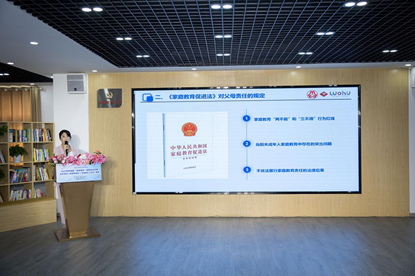 沙龍伊始,羅湖區(qū)人民法院民一庭(家事庭)副庭長欒媛帶來《〈家庭教育促進(jìn)法〉解讀》的專題講座,闡明《家庭教育促進(jìn)法》的意義,明晰家長“兩不得”“三不能”的行為紅線,并針對當(dāng)下大多家庭教育存在生而不養(yǎng)、養(yǎng)而不教等突出問題進(jìn)行剖析,結(jié)合工作歷程中生動形象的案例,讓許多家長明確了法律的要求。同時,欒法官也為家長們提出了實用科學(xué)的家庭教育內(nèi)容和方法,也對家校社協(xié)同育人機(jī)制發(fā)表了自己的想法。