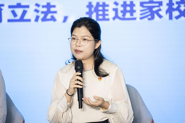 “家長要做好家庭教育,家庭教育要配合學(xué)校教育,學(xué)校和家庭配合是做好家庭教育的關(guān)鍵”,家長代表深圳市兒童青少年健康發(fā)展協(xié)會理事安天麗也談到自己對家、校、社各盡其職、合作共贏的理解,她認(rèn)為家長要積極創(chuàng)建各種親子家庭活動,緊密親子關(guān)系;積極參與社區(qū)組織的家庭教育指導(dǎo)和實踐活動,提升家庭教育能力;同時為孩子創(chuàng)造社會實踐的機(jī)會。