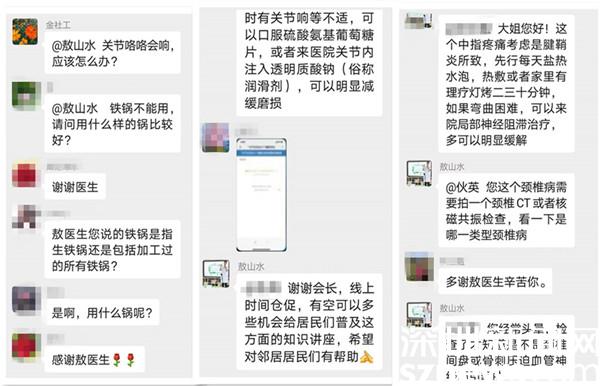 “大家下午好,今天我們講課的主題是《中老年人關(guān)節(jié)炎防治》,希望今天的講座能夠幫助到大家?!卑缴剿匾怃浿屏艘欢魏啙嵉囊曨l,在開課前向居民朋友打招呼。記者了解到,敖山水從事普外科臨床工作20多年,有著豐富的臨床經(jīng)驗。開課后,微信群開始熱鬧了起來,敖山水將授課內(nèi)容通過語音發(fā)送,其助手整理成文案同步發(fā)到群上,實現(xiàn)音頻文字同步轉(zhuǎn)換。