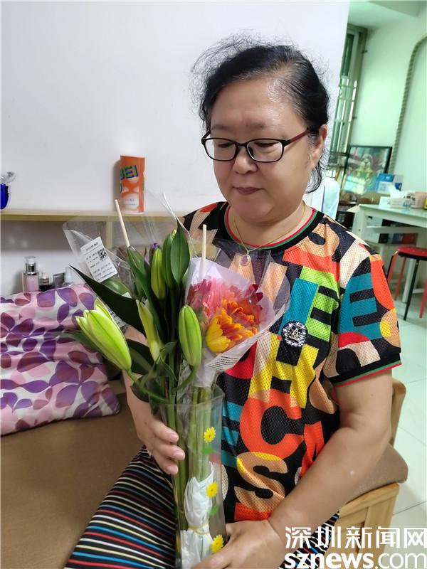 在活動過程中,11位組員都收到了一束鮮花,是社工利用空余時間,捧著花送到每位組員家中的。社工用鮮花敲開組員的家門,這就仿佛是一次家訪,收到花的組員開心地與社工合影?;ㄩ_的時候,不少組員都拍下來發(fā)在群里,讓快樂與美好的氣氛在群里彌漫。組員袁春艷在微信群里說:“感謝人美心善的社工們,在工作異常忙碌的同時,不僅為我們精心準備干貨滿滿、精彩絕倫的減壓課,還為我們送來鮮花的芬芳!讓我日常雜亂的家變得美麗精致、花香彌散、情趣高雅!真的有太多向您學(xué)習的地方!愛您!”